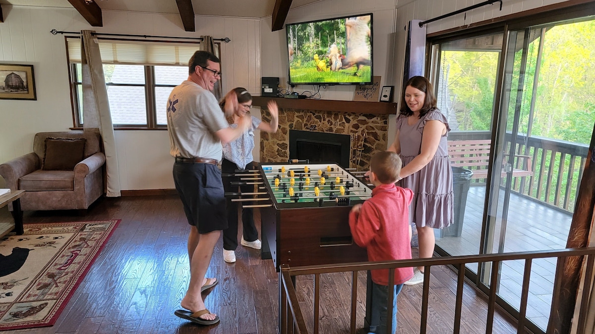 Private 2bd/2bath cabin sleeping up to 7 people with mountain views with plenty of amenities to include multi-game video machine, hot tub, internet, smart TVs, etc. This unit NO LONGER offers a grill. Too many guests have fed the bears. When no one was there to feed the bears they destroyed 2 grills so far in 2025. Unfortunately feeding the bears makes them dependent and the park ends up euthanizing them. A fed bear is a dead bear. (grill amenity removed 9/12/25)